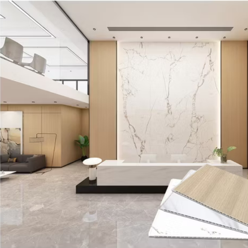 Base Material : Resin / Bamboo Charcoal Powder/ Calcium Powder / Processing AIDS Surface Material : PET-G / PP / PVC Fire Proof Rating : B1/B2 Formaldehyde Level: ENF/E0 Certification : CE, SGS, ECO, CNAS, ISO 9001 Application : Interior Wall & Ceiling Decoration