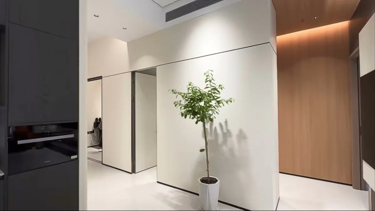 This project features a modern dining space enhanced with wall panels, creating a clean and elegant atmosphere for everyday dining.